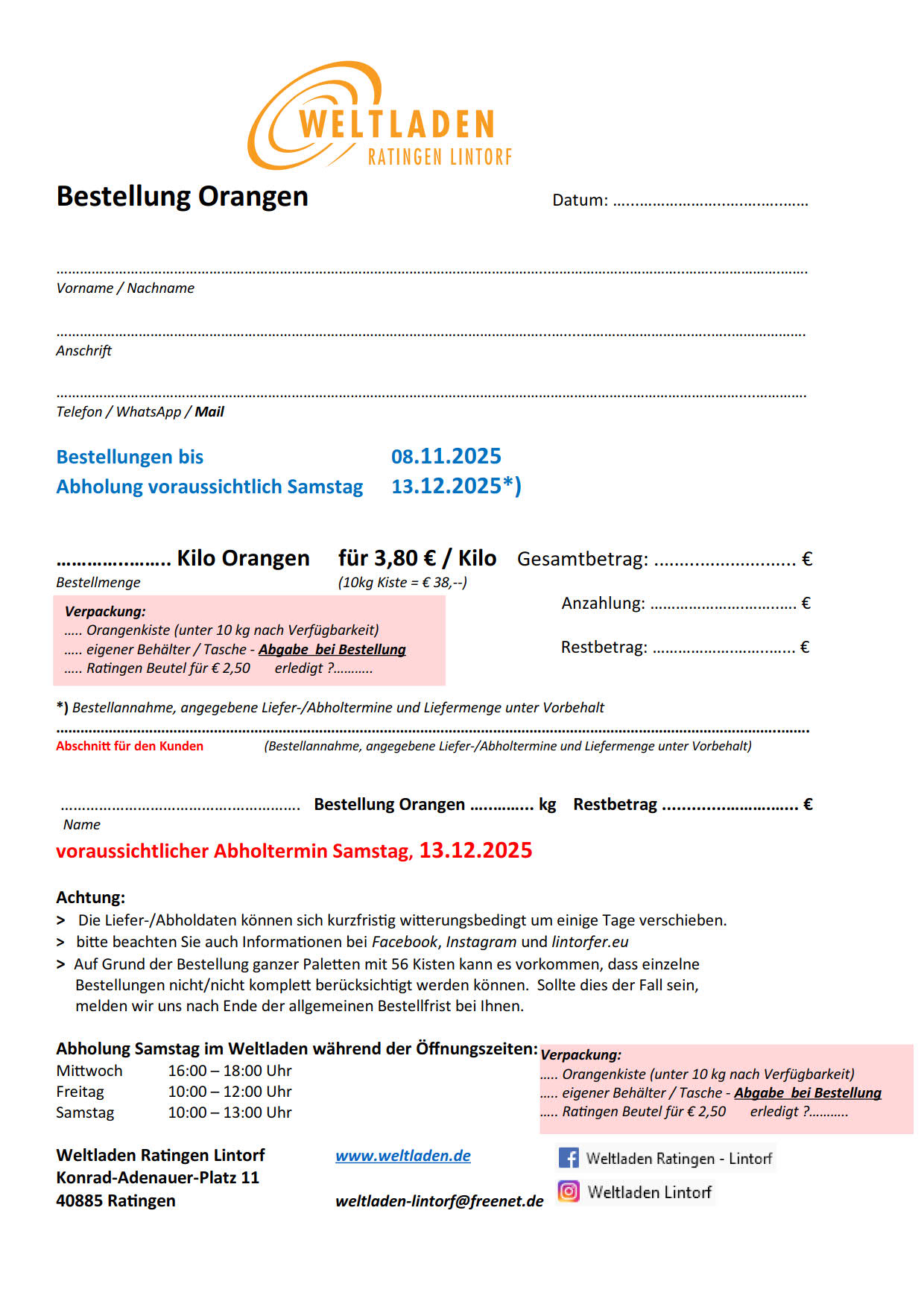Sommer im Weltladen Lintorf - mit tollen Taschen und allem aus Orangen
